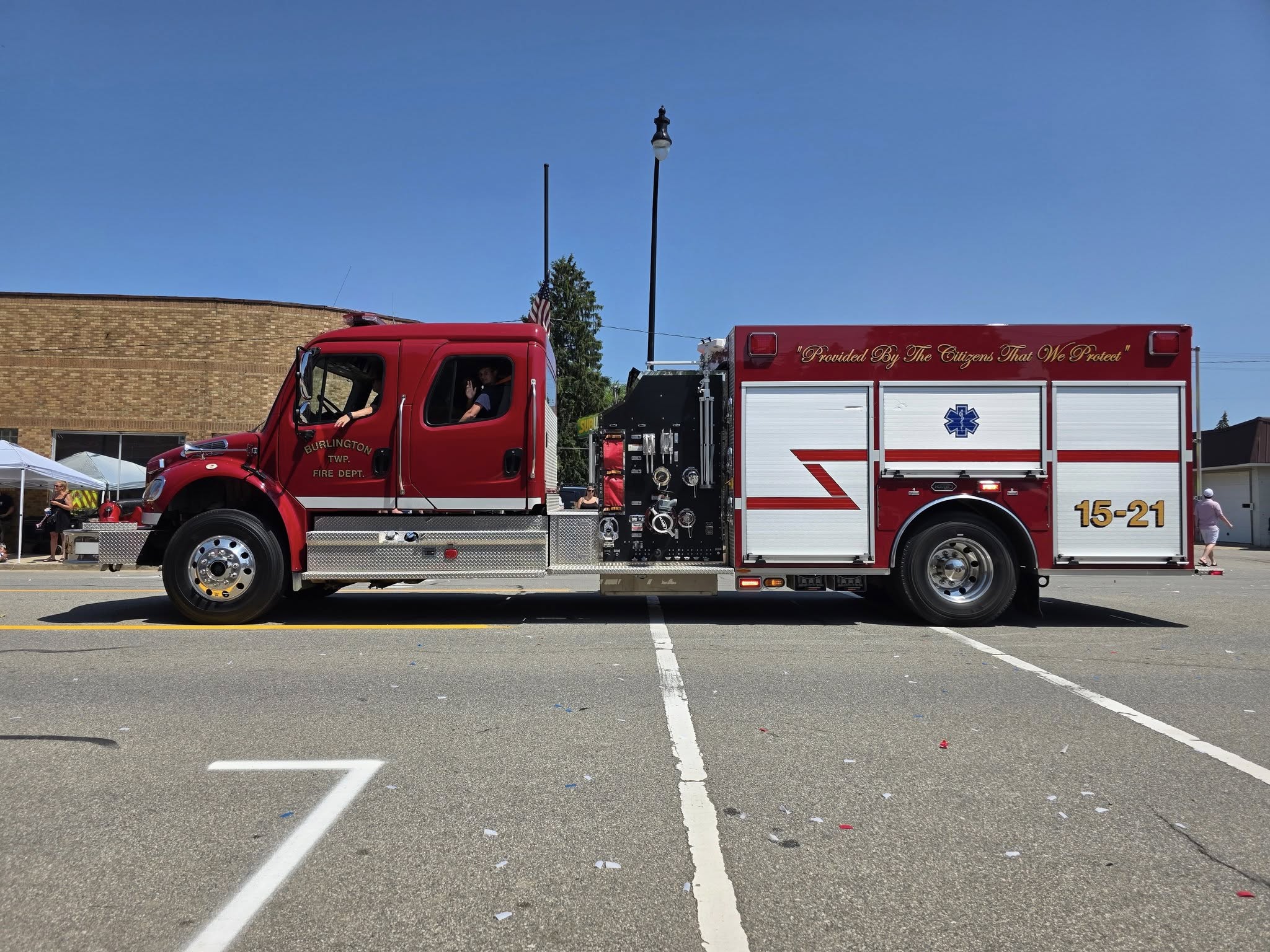 The Burlington Township Fire Department proudly serves the residents of Burlington Township and the surrounding rural communities. Our firefighters are committed to protecting life, property, and the safety of our neighbors through rapid emergency response, training, and prevention efforts.